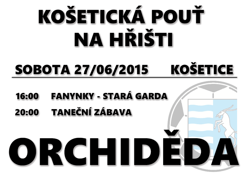Jak se již stalo tradicí, poslední červnová sobota se v Košeticích nese v duchu oslav pouti a nejinak tomu bude i tento rok. V sobotu 27. 6. 2015 se pouťové oslavy ponesou celou obcí a košetické fotbalové hřiště nebude výjimkou. Na programu je tradiční pouťové fotbalové utkání, ve kterém se střetnou týmy složené z toho nejlepšího, co můžou Košetice nabídnout. Své síly totiž od 16 hodin změří mužstvo Fanynek a Staré gardy Košetic.